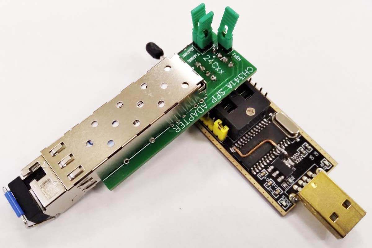 Для работы с программой SFP-Master можно воспользоваться адаптером (переходником) для установки SFP-модуля в программатор CH341A (в слот 24xx) или полноценным устройством SFP-Master.